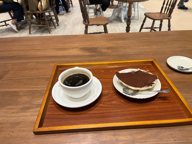 私たちはこの5階で休憩し、アメリカーノとティラミスを注文して一息つきました。