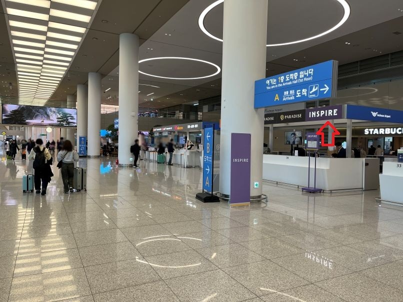途中、空港内にあるインスパイアの窓口でスタッフに確認すると