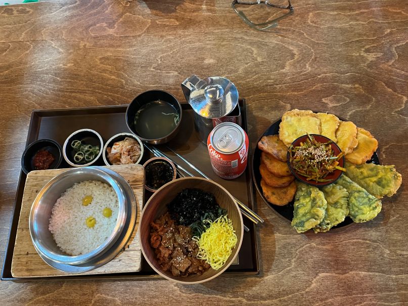 チヂミと釜飯のセットを1人前注文。量がかなり多く、少食の私たちには2人でちょうどいいくらいでした。