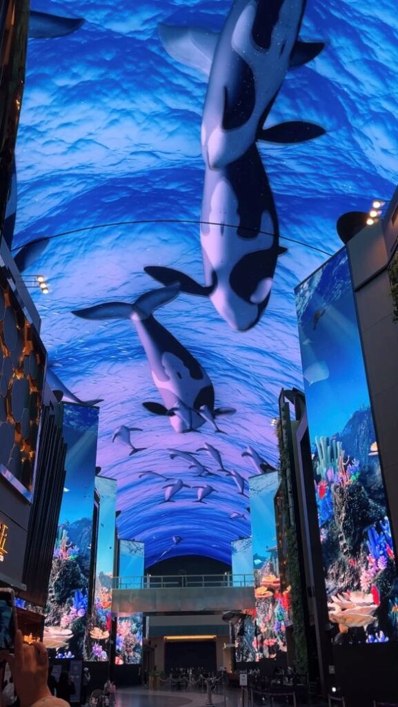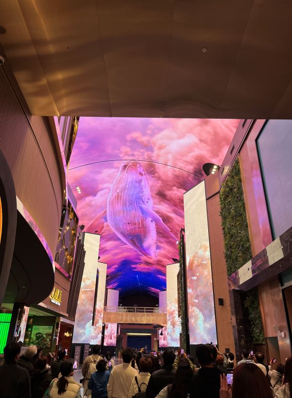 毎正時には約3分のショーがあり、私たちが見たときはクジラが登場する「アンダー・ザ・ブルーランド」というショーでした。迫力があり、楽しめました(もちろん無料です)。