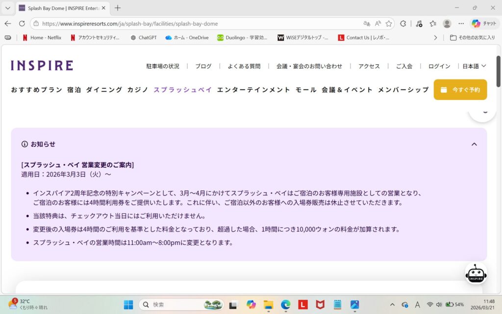 インスパイアは「統合型エンターテインメントリゾート」というだけあり、想像以上に充実した施設でした。