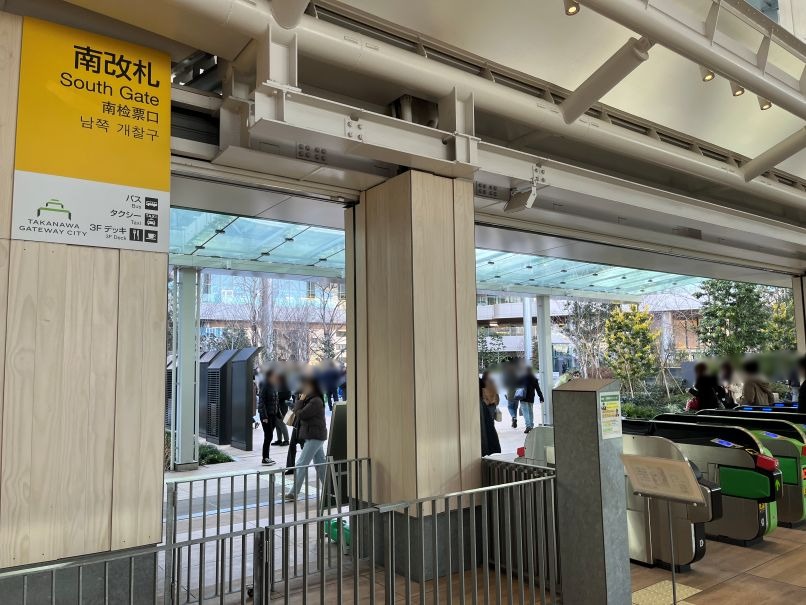 高輪ゲートウェイ駅の南改札を出て左へ曲がり2~3分で駅直結です。