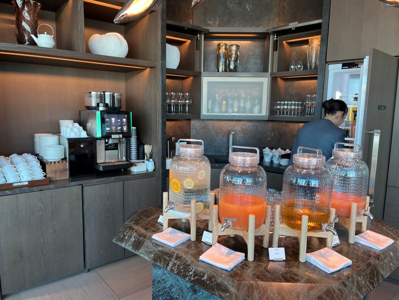 ホテル(ビルの23~30階がホテルです)到着後は、プラチナ会員なので30階のレセプションではなく27階のラウンジでチェックインをしました。軽食とドリンクを少しいただきながらの手続きです。