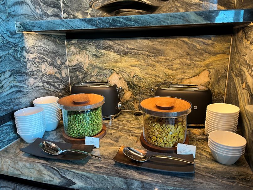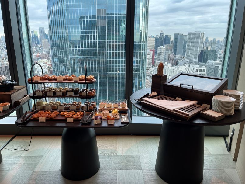 眺めの良いラウンジですが、この日は曇りで少し残念でした。そして窓際席の間隔がかなり狭く、隣の会話が丸聞こえです。このクラスのホテルでこの距離感はどうなのだろう、というのが正直な印象でした。