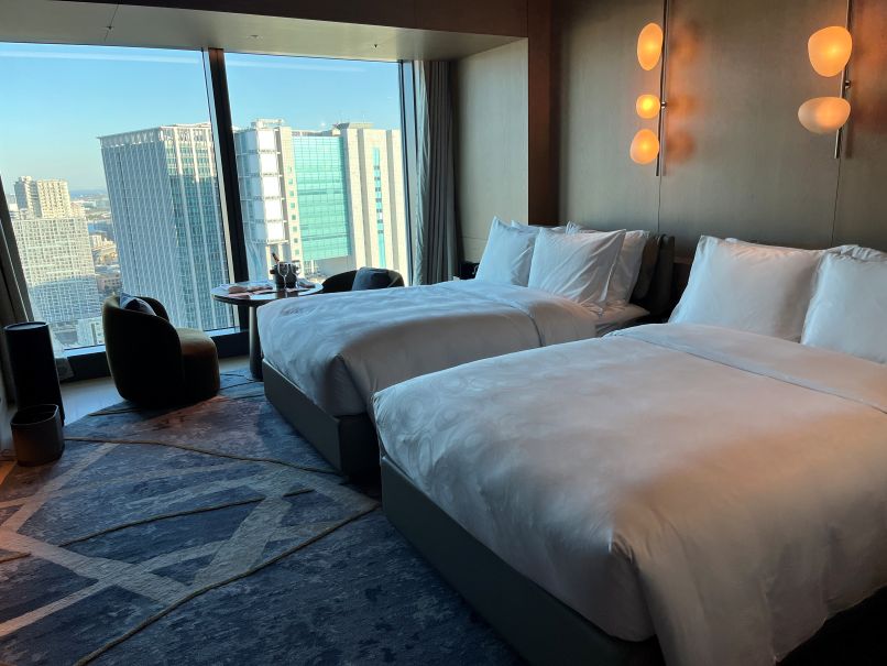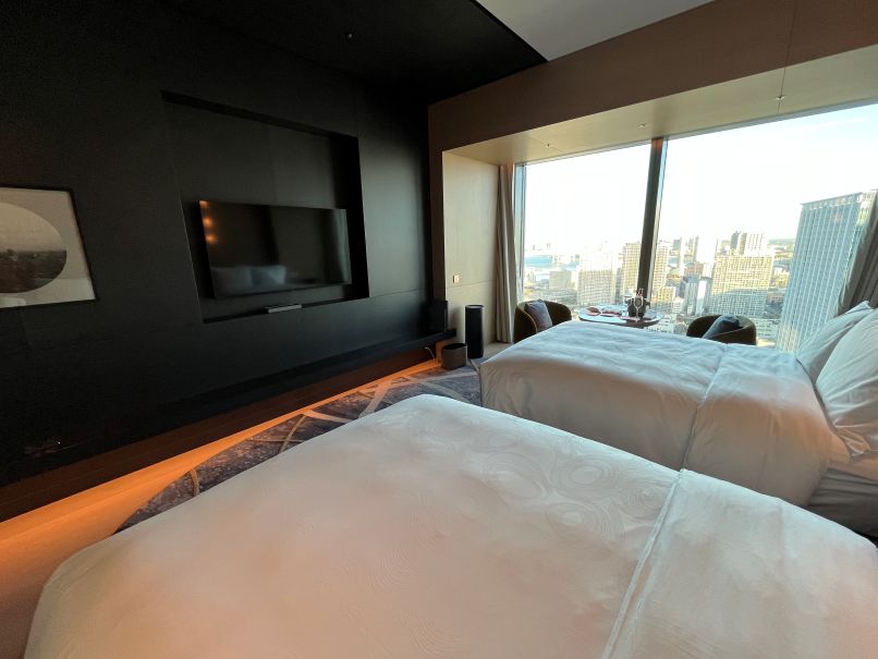 2026年の2月下旬、マイナンバーの電子更新で帰国した際に、私の誕生日ということで贅沢に「JWマリオット・ホテル東京」に宿泊しました。私たちはマリオットのプラチナ会員で106,000ポイントで予約しました。参考までに旅行サイトなどの宿泊費用は私達が予約したボトム(最低料金)のアーバンデラックスという客室で同時期の平日でも1泊100,000円前後というところでした。高級ホテルです。