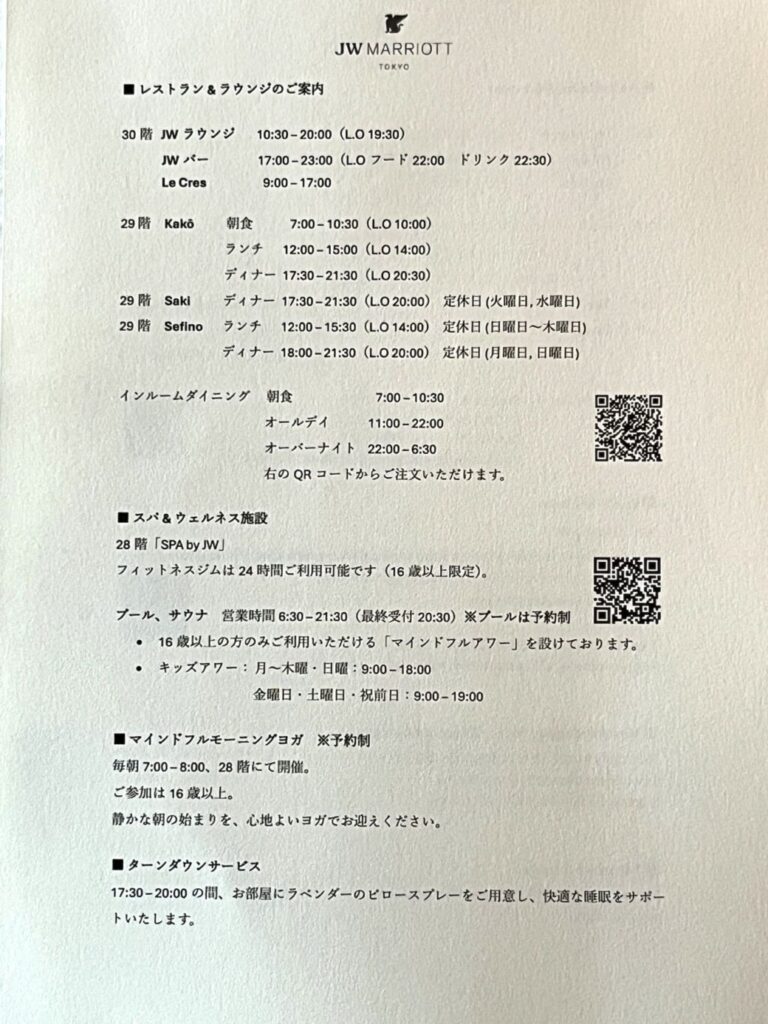 眺望や空間の雰囲気、スタッフのホスピタリティなど「さすがJW」と思わせる部分は確かにあります。一方で、ラウンジの料理内容や席間隔など、価格帯を考えると「もう一歩」と感じる部分もありました。普通のホテルであれば「素晴らしい」という評価になると思いますが、マリオットグループでも最上位クラスのホテルですので、ここは辛口評価です。