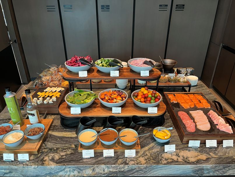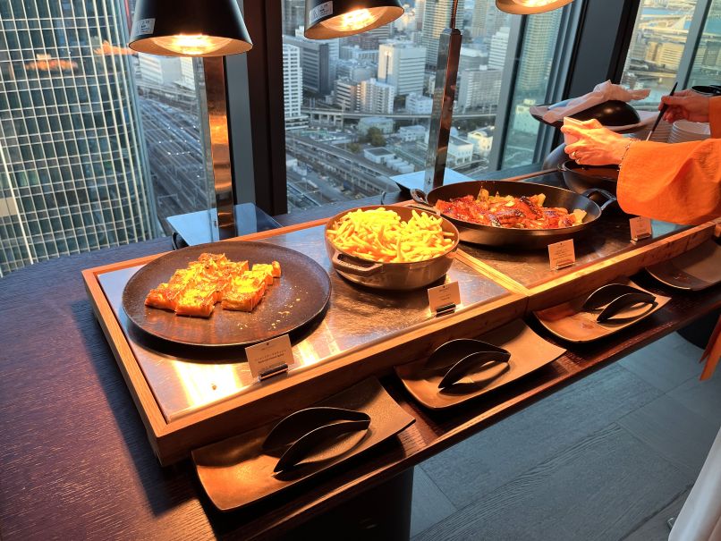 料理では特に鮭が美味しかったです。高級ホテルのラウンジであるチキンやローストビーフなどをその場で切り分けてくれるような「一品料理」はなく、全体的な印象は正直なところ「普通の高級で最高級まではいかないかな」という感じでした。