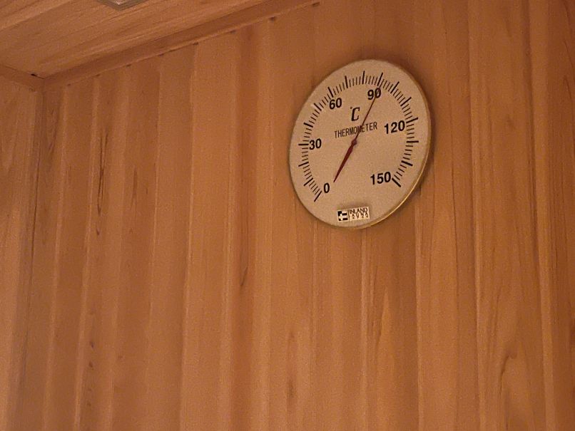 スチームとドライがあり、スチームは92℃。最初は12分入りましたが発汗は今ひとつ。シャワーの水の出し方が分からず、結局お湯を浴びてしまいました。2回目も12分入り、1回目よりは汗をかけましたが、普段通りではありません。体調もあるかと思いますが、92℃という表示よりも少し低いのかなという感覚を持ちました。
