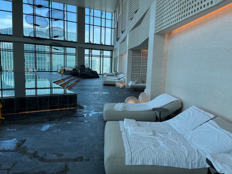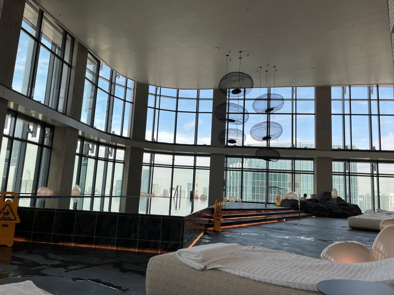 ホテルに戻り、スパやジム、サウナ、プールを確認しました。サウナは自由に使って良いとのことでしたが、プールは予約制でした。