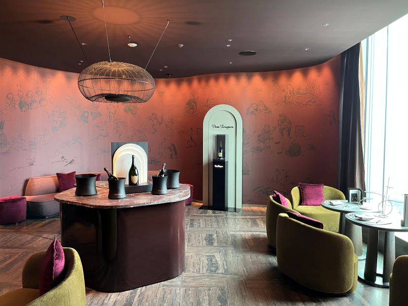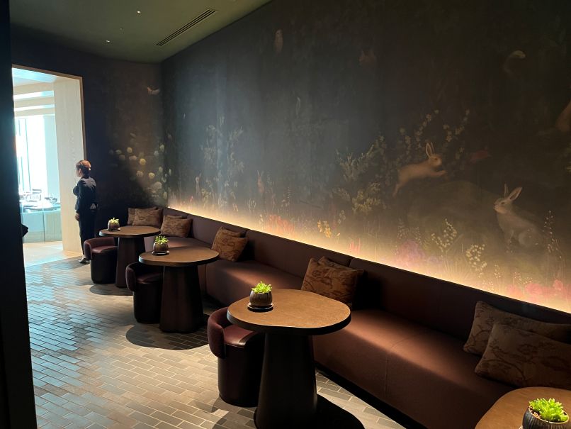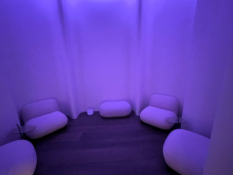 朝食レストラン、寿司店、地中海料理店などを一緒に回って紹介してくれ、最後にはフロント横の「Seiene Space」という秘密の部屋も見せてくれました。照明が変化する、ゆったりと過ごすための空間だそうです。