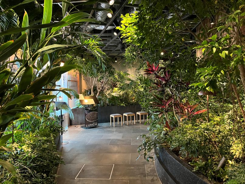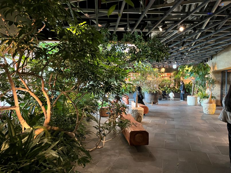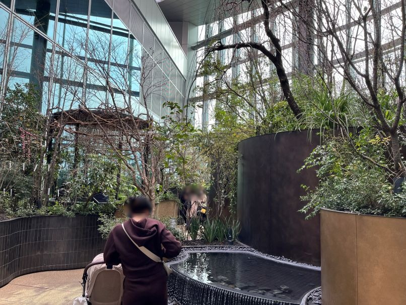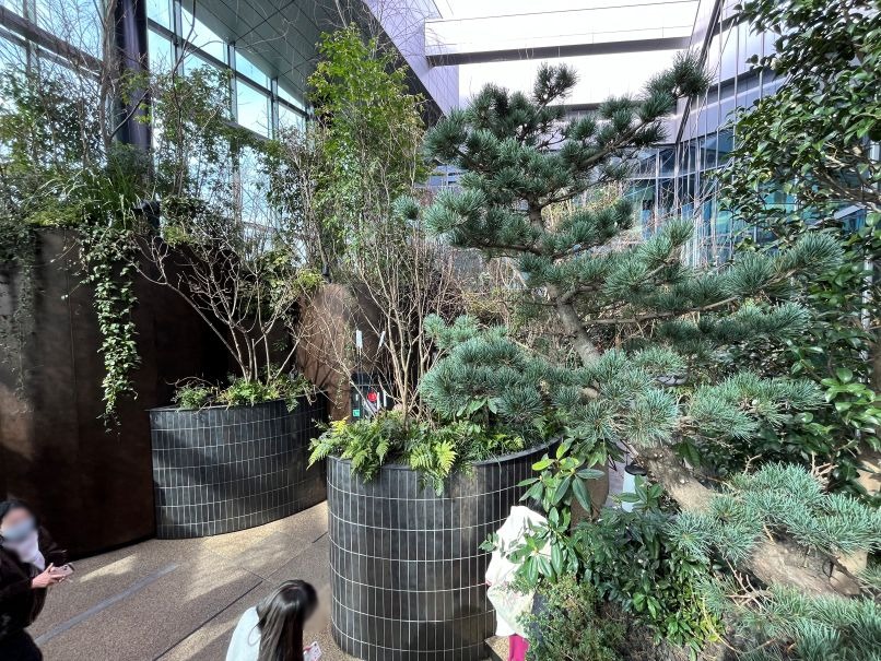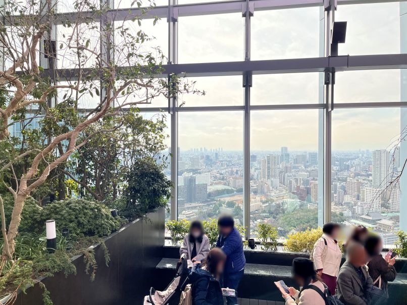 ニュウマン高輪へ移動し専用エレベーターで27階へ。樹木や植物が植えられており、屋外と屋内の両方が楽しめます。屋外はこの日はやや寒めでした。