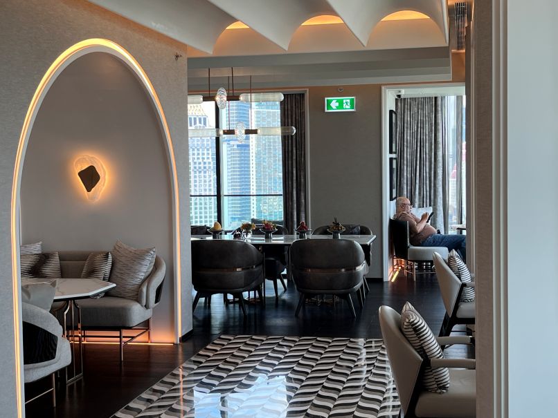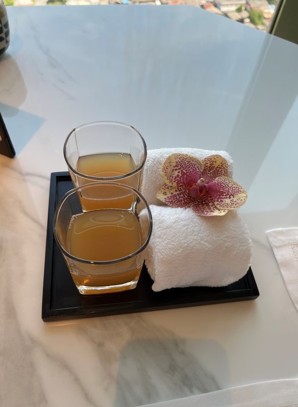 チェックインは7階のレセプションでも可能ですが、結果的には23階のクラブラウンジで行われ、ライチとマンゴーのミックスジュースとおしぼりのサービスを受けながらゆったりと手続きを進めました。