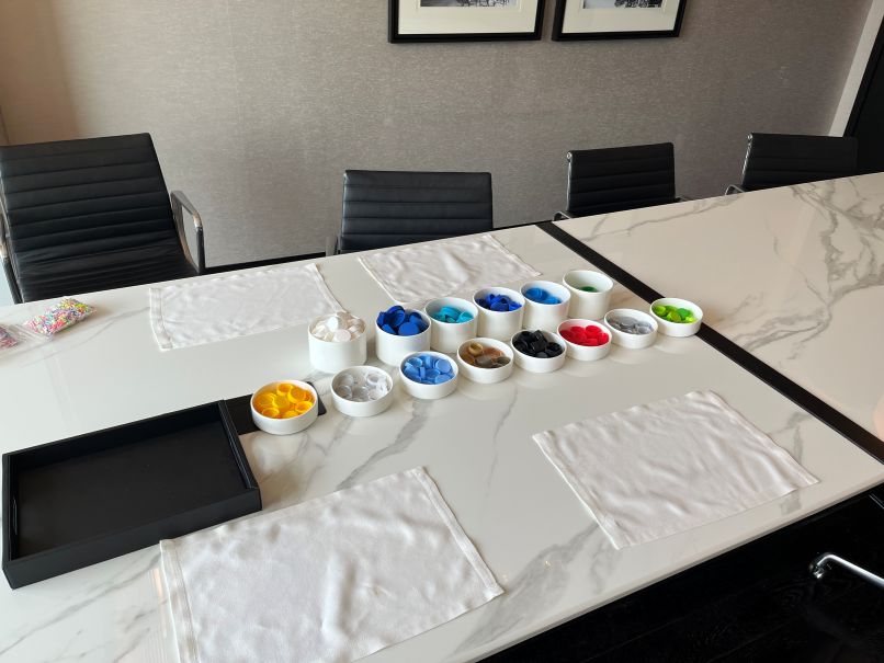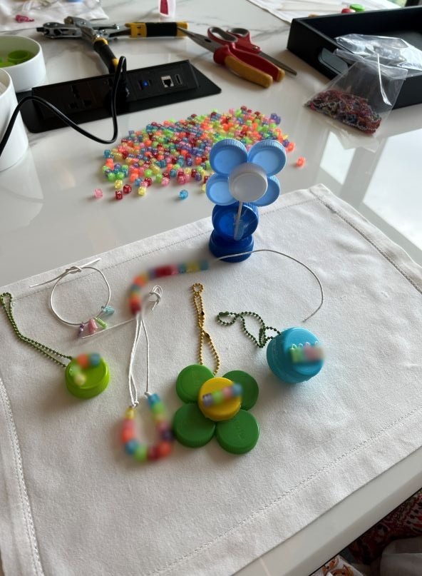 スタッフからは「水曜日は無料のアクティビティがあります」との案内(ほかの曜日はどうなのかは不明です)があり、12時半で予約しました。廃棄されるペットボトルの蓋を再利用してキーホルダーなどを作るというもので、環境にも優しい試みです。