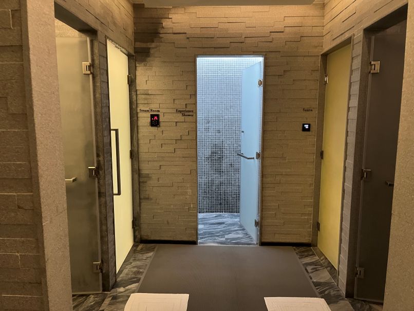 ドライサウナ、スチームサウナ、水風呂、シャワーを完備した広々とした空間。