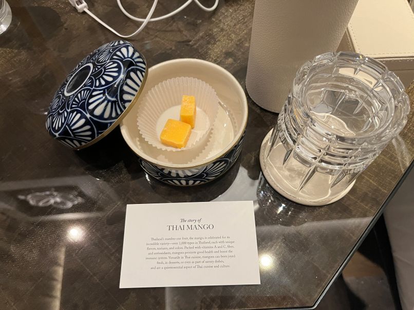部屋に戻るとターンダウンが完了しており、マンゴーのお菓子が添えられていました。