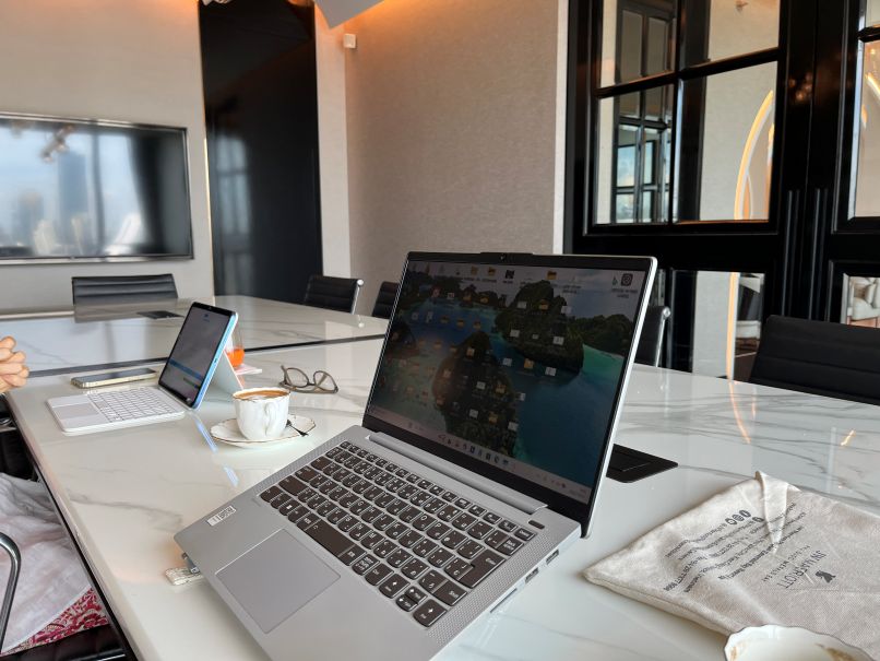 朝食後はラウンジ内の会議室スペースでPC作業。